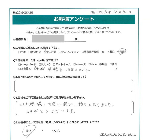 川越市/中古戸建ご売却のO様