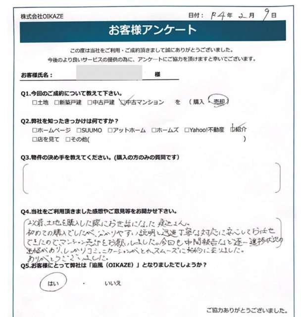 川越市/中古マンションご売却のK様