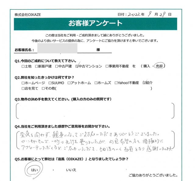 川越市/土地ご売却のY様