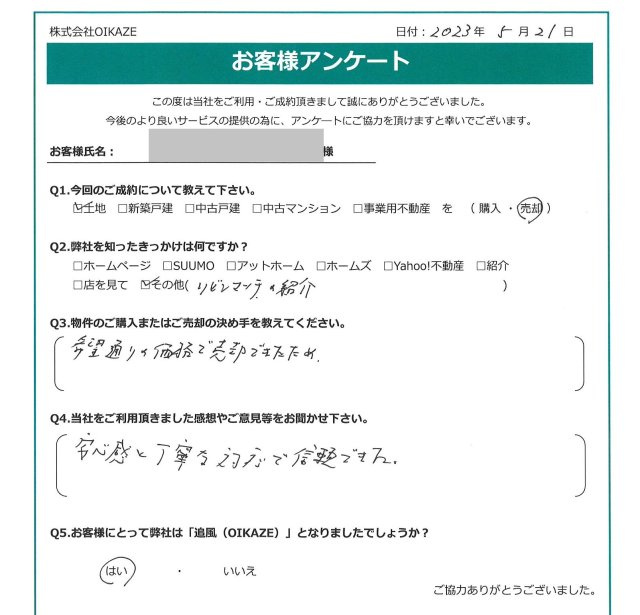 川越市/土地ご売却のS様