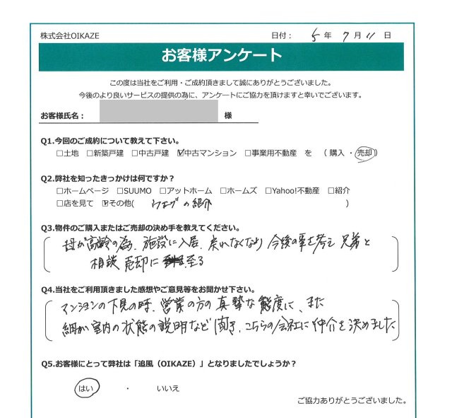 カテゴリ「中古マンション」のお客様の声一覧を見る